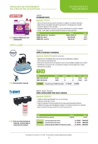 • Désembouage et désoxydation des installations de chauffage et de climatisation (selon modèle)