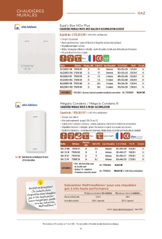 Modèle Référence Puissance (kW) Débit d’ECS Type d’évacuation H x l x P (mm) Prix HT Éco-part.
