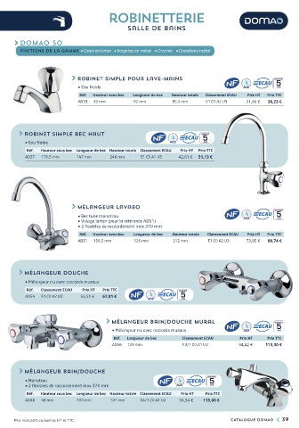Prix indicatifs conseillés HT et TTC. CATALOGUE DOMAO 39