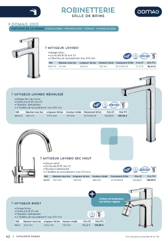 FINITIOns de la gamme • Corps en laiton • Manettes métal • Chromé • Limiteur de débit