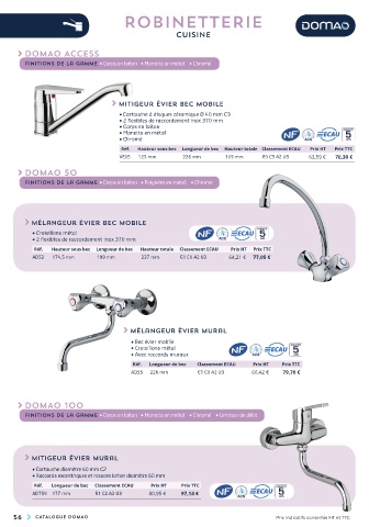 56 CATALOGUE DOMAO Prix indicatifs conseillés HT et TTC.
