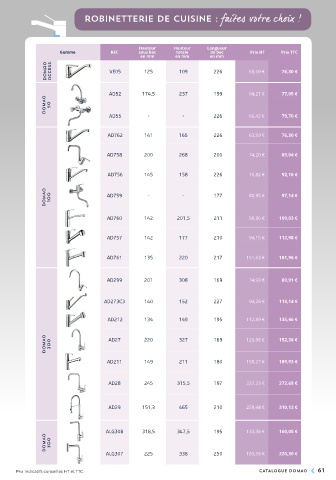Prix indicatifs conseillés HT et TTC. CATALOGUE DOMAO 61
