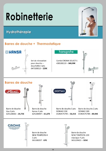 Barres de douche + Thermostatique