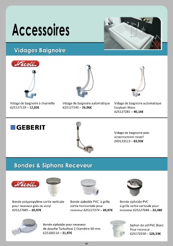 625127085 – 20,97€                      receveur 625127274 – 20,97€       receveur 625127048 – 22,48€