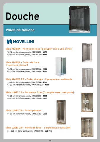 Série RIVIERA - Panneaux fixes (à coupler avec une porte)