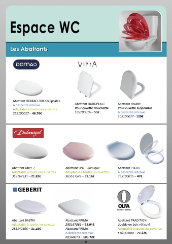 Abattant ORLY 2 Abattant SPOT Classique Abattant PROFIL