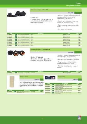 Pour l'isolation des canalisations. Armature Code Description Prix HT