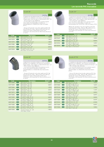 La gamme de raccords et tubes en PVC Nicoll est La gamme de raccords et tubes en PVC Nicoll est