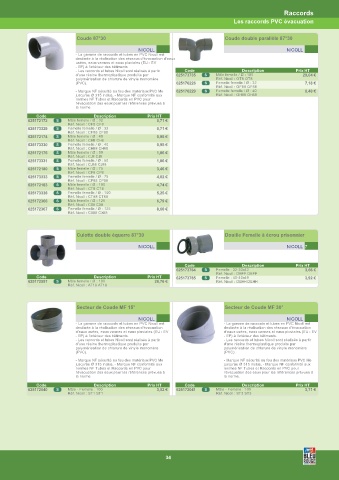 - Les raccords et tubes Nicoll sont réalisés à partir Code Description Prix HT