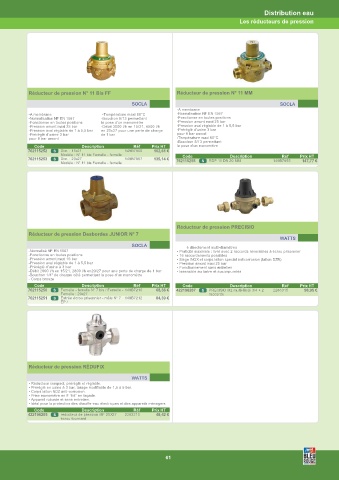 -Pression aval réglable de 1 à 5,5 bar • Pression amont maxi 25 bar