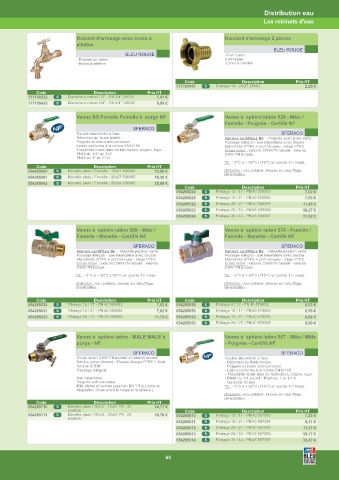 054265060 S Manette plate / Femelle : 15x21 506004 13,96 € Utilisation : eau potable, réseau en chauffage,