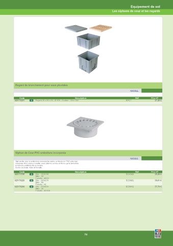Siphon de cour à emboiture incorporée sortie verticale en PVC gris clair,